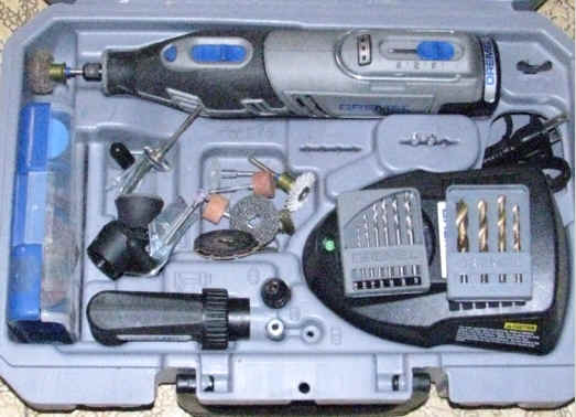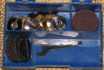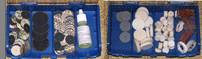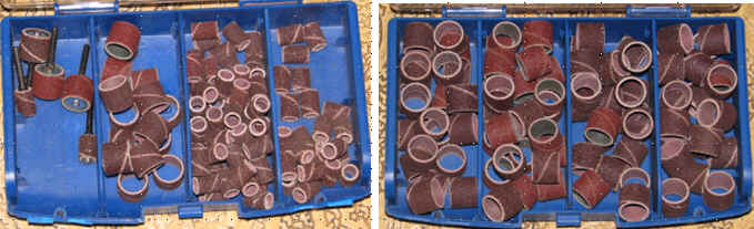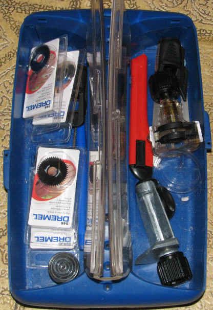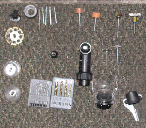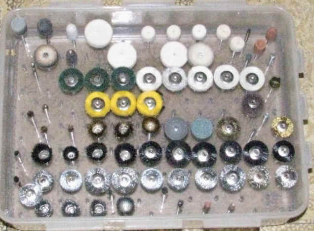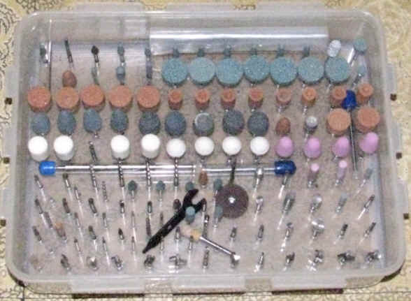 I gathered these Dremel tools and bits over a 15 year time span. Every time I would go to a store that had Dremel Tools I would go and see if they had something I did not have. I took three Plastic Containers and placed 1/2 inch Lexan that I had drilled 1/8 and 1/16 holes in to hold my bits. This has way I can see all my bits in a hurry and get what I need. You should be able to build a similar holder for your Dremel bits out of wood or plastic you have laying around.