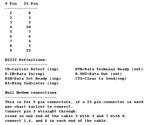 null modem cable before the jack. Note: The 9 pin connections are not the same