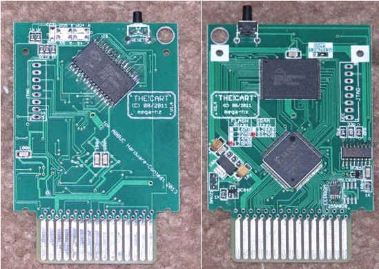 The!Cart is equipped with 128MB flash (Spansion S29GL01 chip), 512k RAM and a 256-byte SPI EEPROM (Microchip 25AA020A). The memory is addressed using 16384 8k banks (64 8k banks when using RAM instead of flash).
