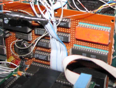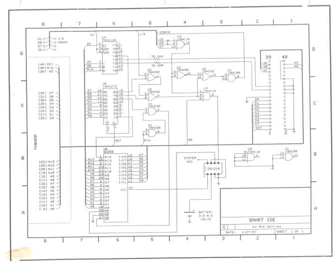 Here is a shot of the Woolley Smart OS you can see the standard 74lsxx chips. I started work on combining the logic into a 16v8 gal chip to reduce the amount of logic chips to support the RamDisk and the Smart OS. Here is a schematics that Bob Woolley cad for the Smart IDE that was modified to become the Smart OS